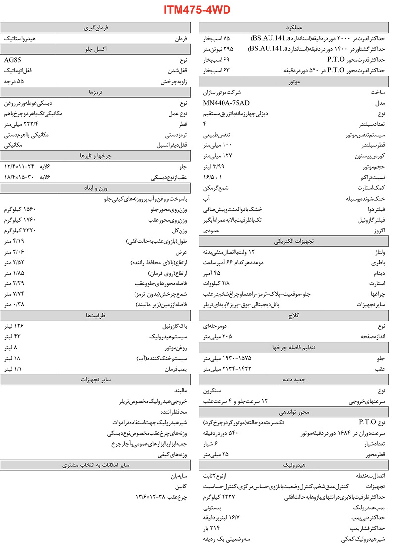 تراکتور کشاورزی ITM 475 4WD توربودار