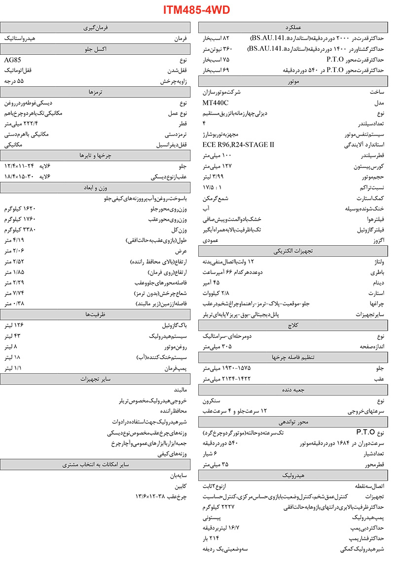 تراکتور کشاورزی ITM 485 4WD توربودار